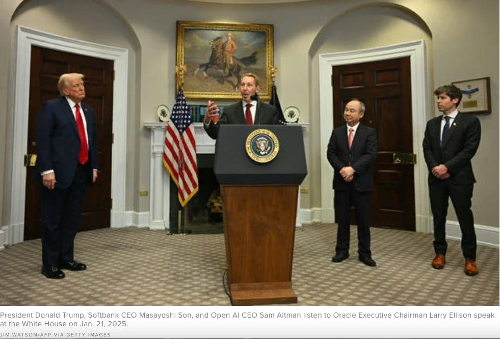 This how the main stream media is casting this announcement: Trump announces up to $500 billion in private sector AI infrastructure investment. The implication is clear: Trump is committing $500 B to select members of the private sector to build AI facilities (I’ll get into the “why” later). This is the reality: No he is not.