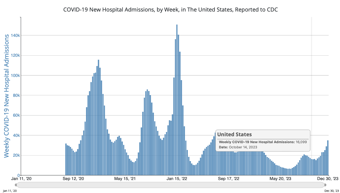 Not so pretty Picture 1 is a graph of new “COVID Hospitalizations By Week”.